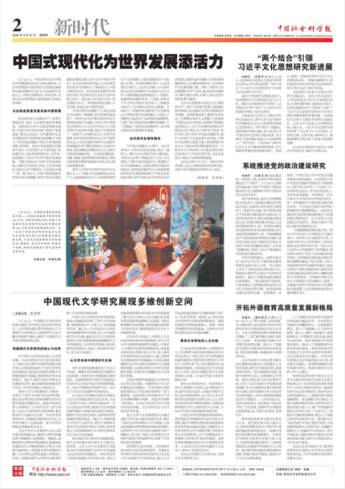 (转自《中国式现代化为世界发展添活力》,《中国社会科学报》2025年3月27日A02版,记者:赵徐州、肖兴婷。)