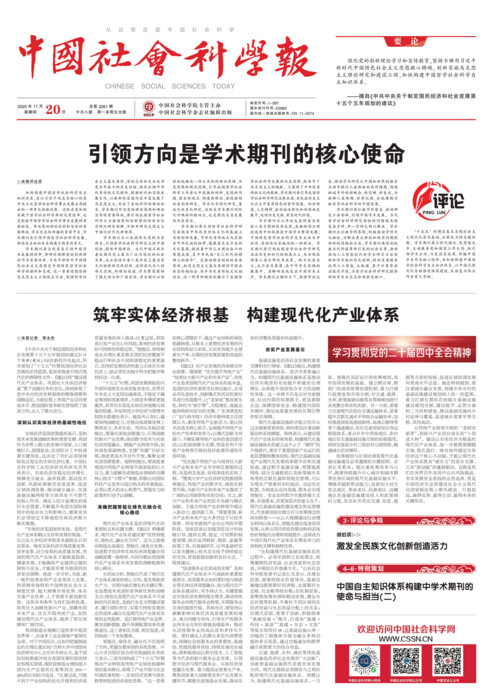 (转自《筑牢实体经济根基 构建现代化产业体系》,《中国社会科学报》,2025年11月20日A01版,记者:李永杰。)