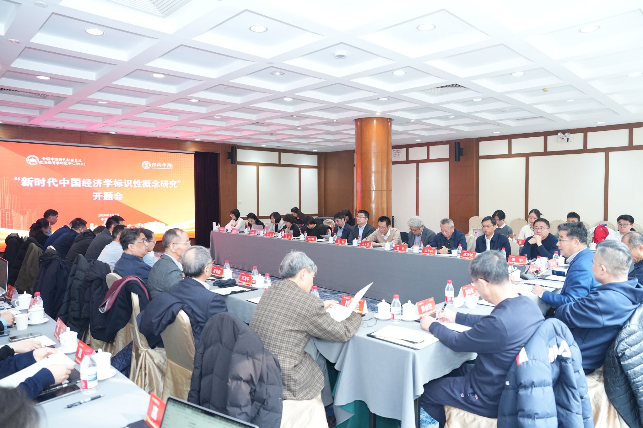 2026年3月7日下午,北京市社会科学基金重大项目“新时代中国经济学标识性概念研究”开题会在北京举行。会议围绕新时代中国经济学标识性概念的理论内涵、体系构建与研究路径展开深入研讨。本次会议由中国人民大学原校长、国家一级教授刘伟主持。中国人民大学党委常委、副校长郑新业出席会议并致辞。吉林大学中国国有经济研究中心主任宋冬林教授等专家学者受邀参会。